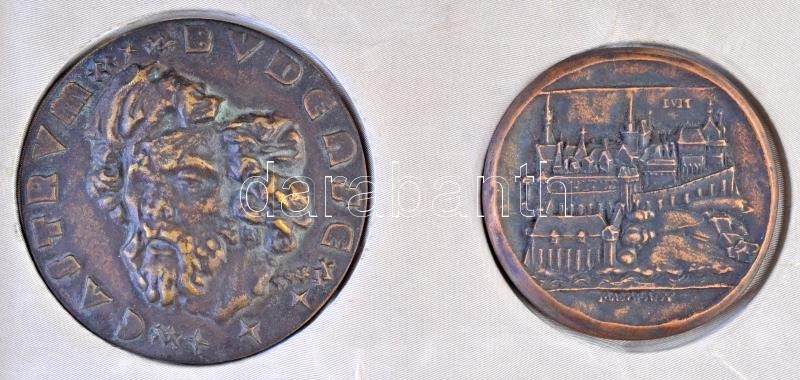 Madarassy Walter (1909-1994) DN "Budapesti Történeti Múzeum" (320g/85,5mm) + "CASTRVM BVDENSE / Budapesti Történeti Múzeum - Budavári Palota" (422g/100mm) Br emlékérem pár, eredeti dísztokban T:1-