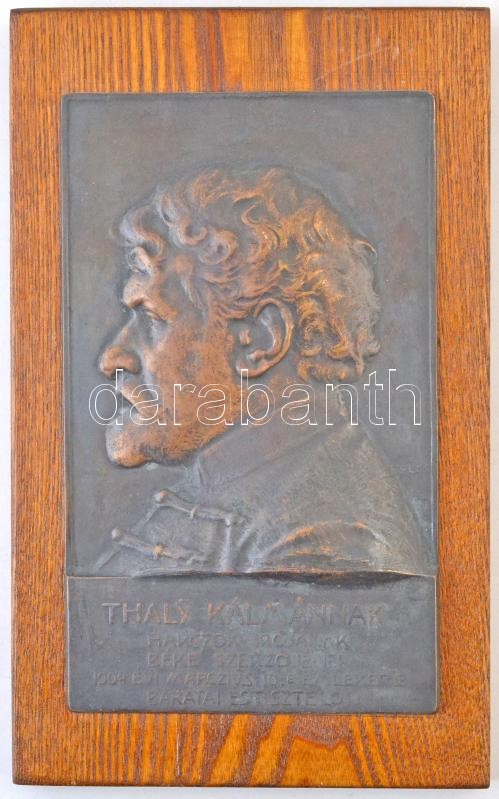 Telcs Ede (1872-1948) 1904. "Thaly Kálmánnak, harczok írójának, béke szerzőjének, 1904. évi márczius 10.-e emlékére, barátai és tisztelői." Br plakett falra akasztható fa táblán (979g/125x206mm) T:2 /