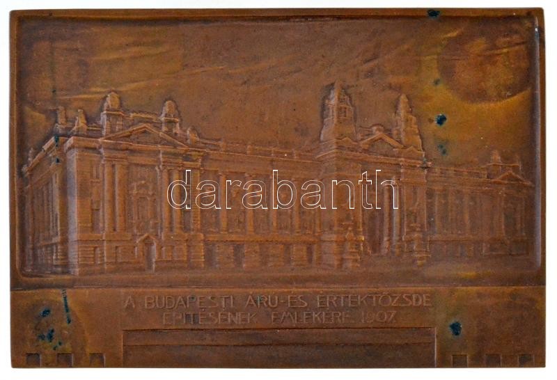 Telcs Ede (1872-1948) 1907. "Alpár Ignác építész - Kornfeld Zsigmond elnök / A Budapesti Áru- és Értéktőzsde építésének emlékére. 1907." Br plakett (207,47g/100x67,5mm) T:2 hátlapon fo. / Hungary 1907. "To commemorate the building of the Budapest Merchandise and Stock Market" Br commemorative plaque. Sign.: Ede Telcs (207,47g/100x67,5mm) C:XF on backside spots