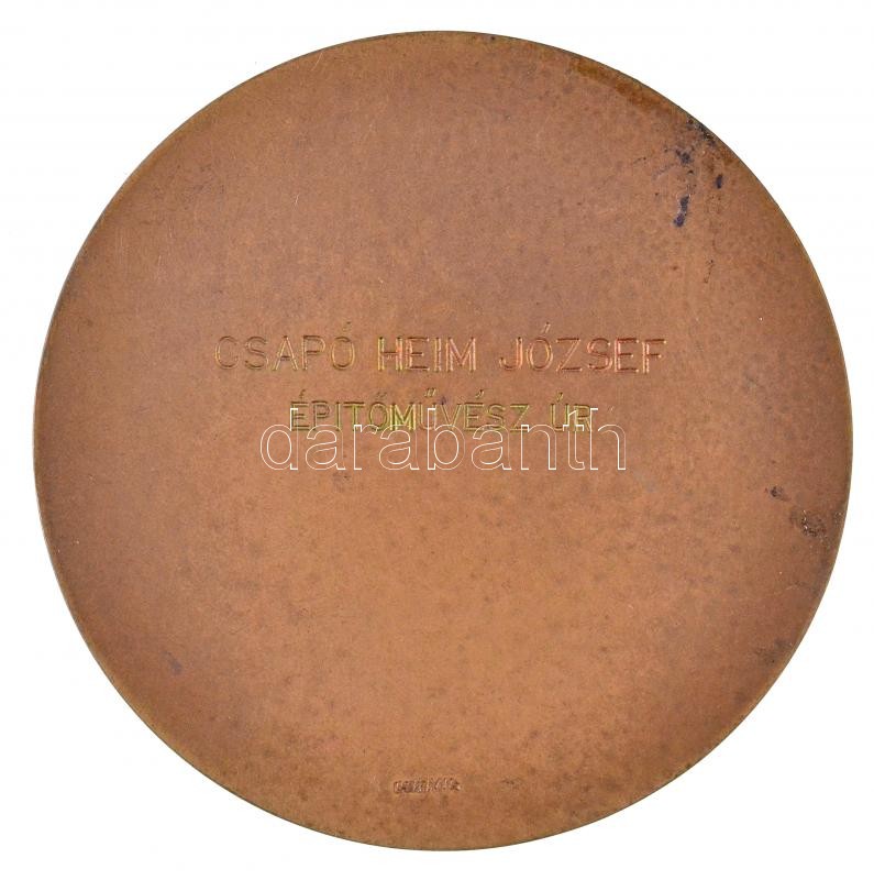 / Hungary ~1930-1940. "A magyar kivitel fejlesztéséért M. K. Külkereskedelmi Hivatal (For the development of the export - Hungarian Royal External Trade Office)" Br plaque with "LUDVIG" makers mark for the architect József Csapó Heim, in original, damaged case with ""M. Kir. Külkereskedelmi Hivatal Budapest (Hungarian Royal External Trade Office Budapest)" mark. Sign.: Oszkár Varga (125g/70mm) C:XF small stain