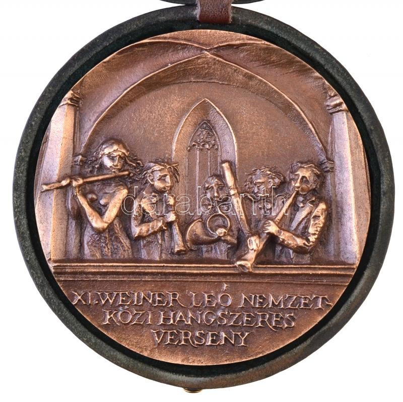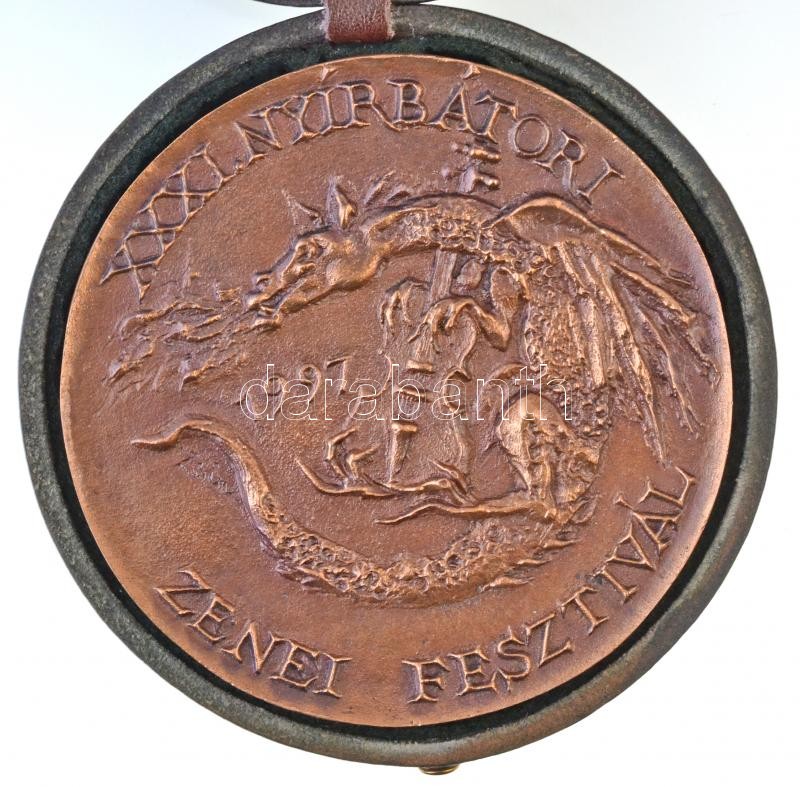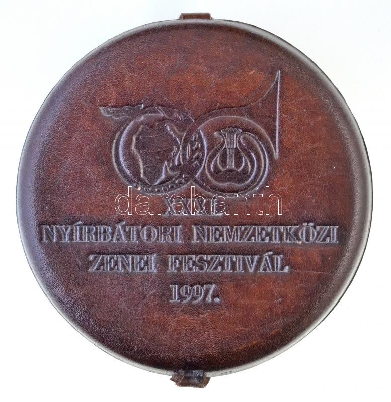 Zsin Judit (1957- ) 1997. "XXXI. Nyírbátori Zenei Fesztivál / XI. Weiner Jenő Leó Nemzetközi Hangszeres Verseny" öntött, kétoldalas Br érem, eredeti bőrtokjában (557g/~108mm) T:1- / Hungary 1997. "XXXI. Nyírbátori Zenei Fesztivál / XI. Weiner Jenő Leó Nemzetközi Hangszeres Verseny" cast, double sided Br commemorative medallion, in its original leather case. Sign.: Judit Zsin (557g/~108mm) C:AU