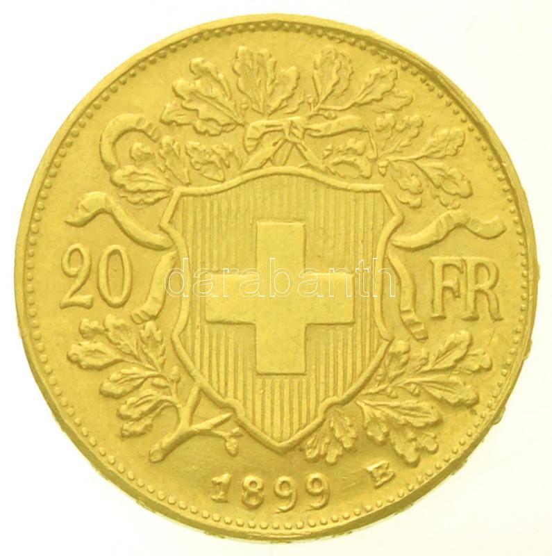 Svájc 1899B 20Fr Au (6,45g/0.900) T:2 edge error, small scratch / Swit... https://www.darabanth.com/hu/28-Nagyaukcio/28.1/Numizmatika/Magyar-es-kulfoldi-aranypenzek-es-emlekveretek~11290/Svajc-1899B-20Fr-Au-6-45g0900-T2-edge-error-small-scratch-Switzerland-1899B-20-Francs-Au-6~II1663386