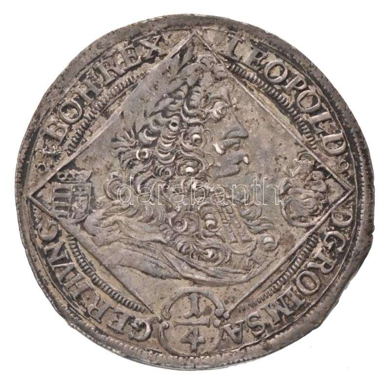 1695K-B 1/4 Tallér Ag "I. Lipót" Körmöcbánya (7,27g) T:1-,2 ... https://www.darabanth.com/hu/28-Nagyaukcio/28.1/Numizmatika/Magyar-es-magyar-verdejelu-fem-es-ezustpenzek~11655/1695K-B-14-Taller-Ag-I-Lipot-Kormocbanya-7-27g-T1-2-ph-hajlott-lemez-Hungary-1695K-~II1681077