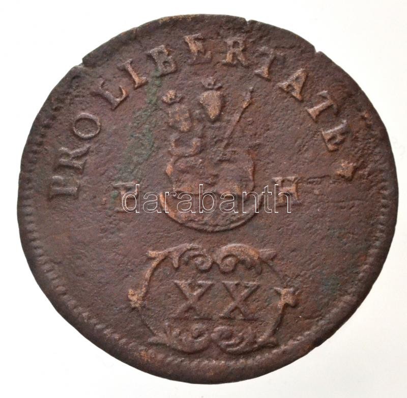 Leírás: 1705. XX Poltura Cu "II. Rákóczi Ferenc" (14,84g) T:2- ph. / Hungary 1705. XX Poltura "Francis II Rákóczi" (14,84g) C:VF edge error Huszár:1529., Unger II.: 1130.a