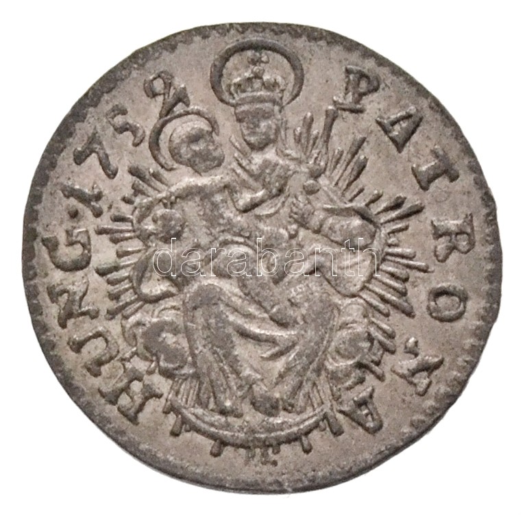 Hungary 1752K-B Denar Ag "Maria Theresia" rays behind Madona, closed crown on coat of arms. No record of this type with closed crown in the Huszár and Unger catalogues! (0,49g) C:AU