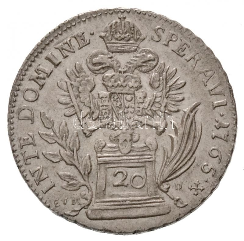 Leírás: 1765EVM-D / BH 20kr Ag "Lotharingiai Ferenc" (6,65g) T:1-,2 / Hungary 1765EVM-D / BH 20 Kreuzer "Franz of Lothringen" (6,65g) C:AU,XF