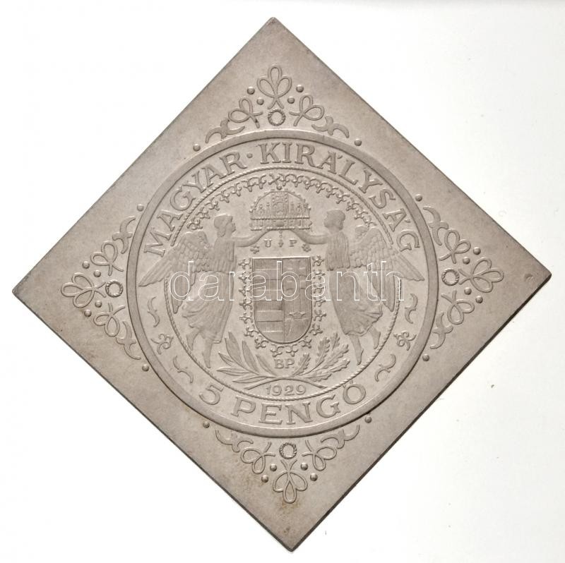 Hungary 1929. 5 Pengő klippe Ag "Saint Ladislaus" trial strike with U.P. mark (50,2g/45mm) C:UNC,AU(P)