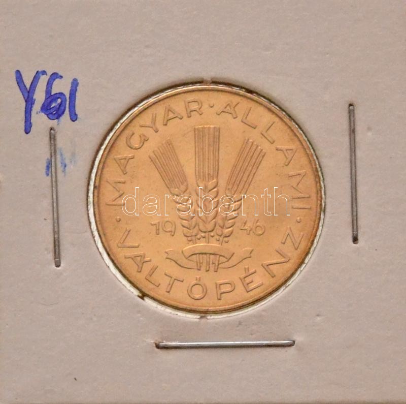1946. 20f Cu-Al rozetta T:1 / Hungary 1946. 20 Fillér Cu-Al with roset... https://www.darabanth.com/hu/28-Nagyaukcio/28.1/Numizmatika/Magyar-es-magyar-verdejelu-fem-es-ezustpenzek~11655/1946-20f-Cu-Al-rozetta-T1-Hungary-1946-20-Filler-Cu-Al-with-rosetta-CUNC--Adamo-F4~II1674425