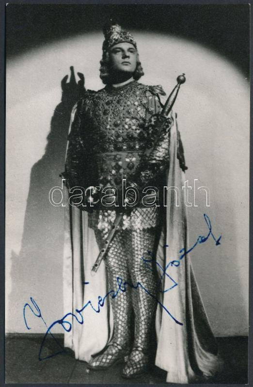 Leírás: Joviczky József(1918-1986) operaénekes aláírása az őt ábrázoló pecséttel jelzett Várkonyi műtermében készült fotón