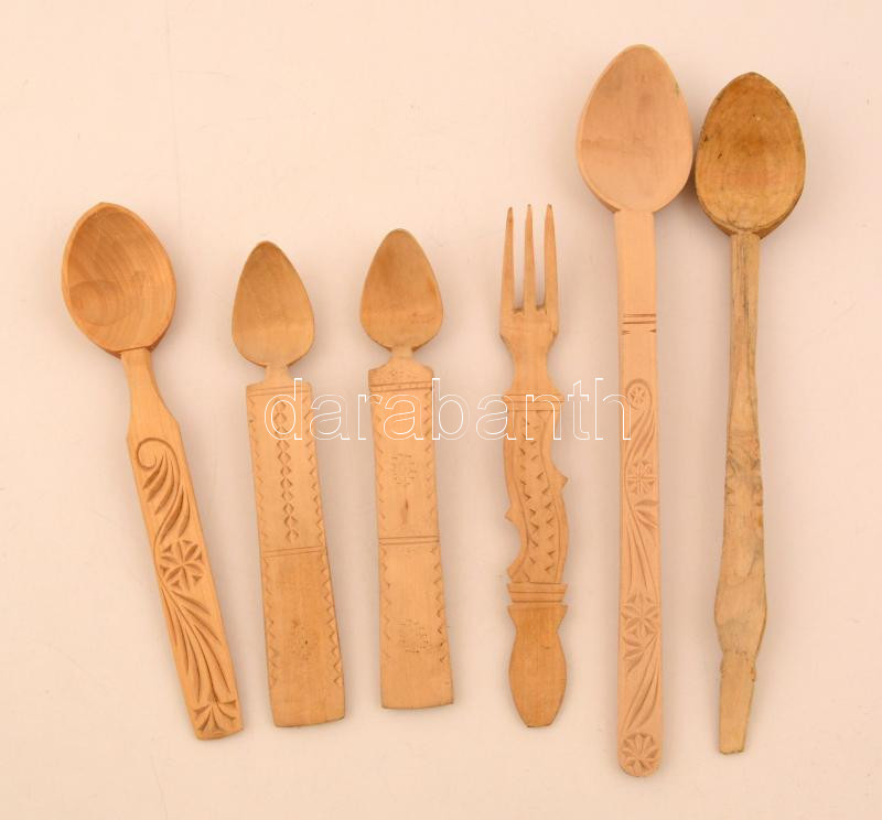 Fa evőeszközök, kanalak, villa, 6 db, nép faragásokkal, h: 33 és 21 cm... https://www.darabanth.com/hu/280-Gyorsarveres/280.0/Festmeny-mutargy-papirregiseg-egyeb/Bolhapiac~11/Fa-evoeszkozok-kanalak-villa-6-db-nep-faragasokkal-h-33-es-21-cm-kozotti-meretben-v~II1445488
