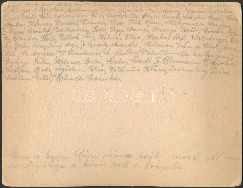 Leírás: 1924 Leányiskola(?) bentlakó tanulói, csoportkép, kartonra ragasztva, hátulján feliratozva, 17,5×22,5 cm