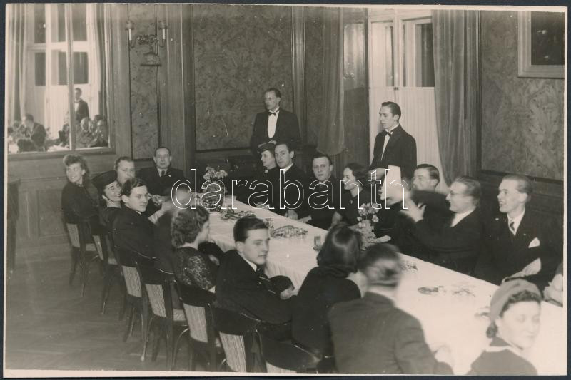 Leírás: 1940 Gellért Szálló, öregdiák összejövetel, Beller Dezső felvétele, hátulján feliratozva, pecséttel jelzett, 12×17,5 cm