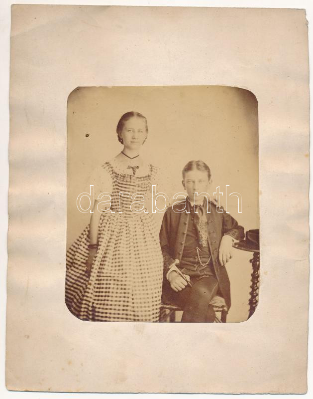Leírás: cca 1870 Perleberg Artú (Tempefői néven író) és Thirring Gizella, Lukse Fábry Béla felesége, Thirring Gusztáv testvére 11x13 cm