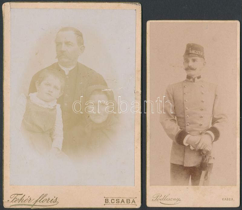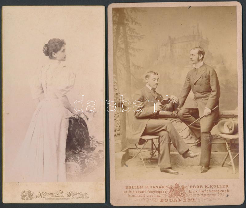 cca 1880-1900 Vegyes portrék, keményhátú kabinetfotók különböző magyar fényképészek műtermeiből (Koller Budapesten, Mertens Budapesten, Fehér Flóris Békéscsabán, Podleszny Kassán) 4 db, 15x7 - 17×11 cm