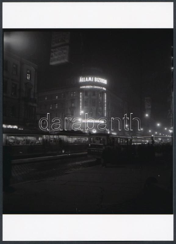 Leírás: cca 1960 Budapest, Blaha Lujza tér, 7-es autóbusz a megállóban, korabeli negatívról készült mai nagyítás, 13x18 cm