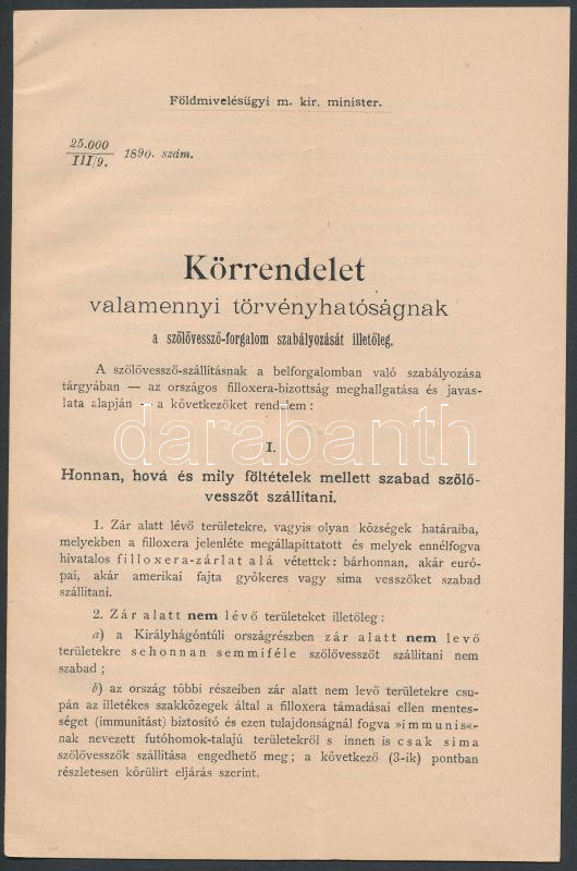 1890 Földmivelésügyi miniszter körrendelete a szőlővessző-forgalom sza... https://www.darabanth.com/hu/280-Gyorsarveres/280.0/Festmeny-mutargy-papirregiseg-egyeb/Nyomtatvanyok~43/1890-Foldmivelesugyi-miniszter-korrendelete-a-szolovesszo-forgalom-szabalyozasanak-ugyeb~II1445992
