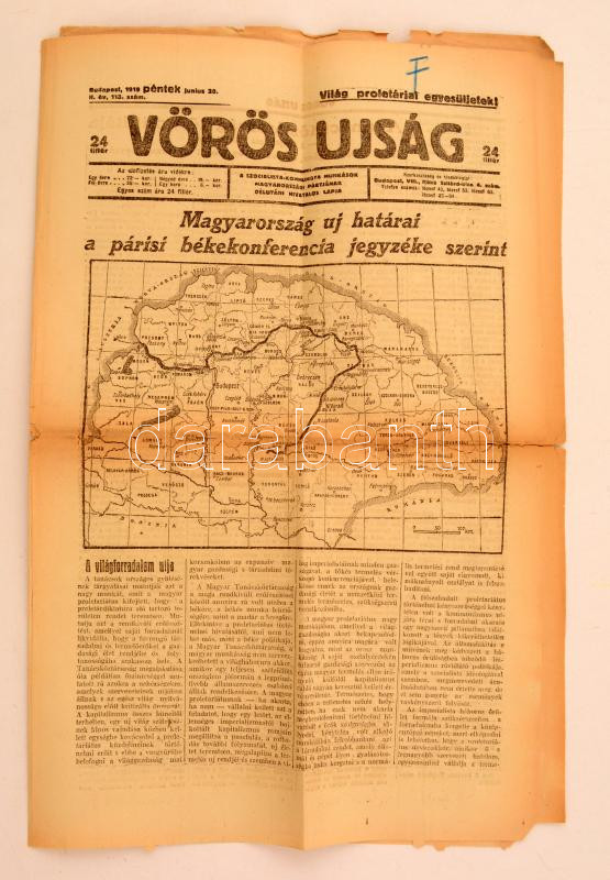 1919 a Vörös Újság jún. 20-i lapszáma, érdekes írásokkal https://www.darabanth.com/hu/280-Gyorsarveres/280.0/Festmeny-mutargy-papirregiseg-egyeb/Nyomtatvanyok~43/1919-a-Voros-Ujsag-jun-20-i-lapszama-erdekes-irasokkal~II1440969