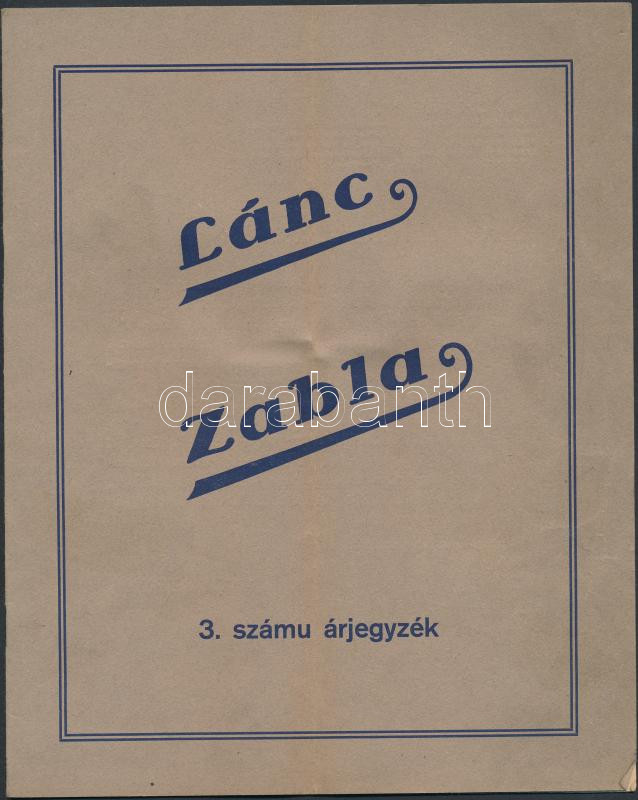 1935 Budapest, a Láncközpont 3. számú árjegyzéke számos ábrával. Hajto... https://www.darabanth.com/hu/280-Gyorsarveres/280.0/Festmeny-mutargy-papirregiseg-egyeb/Nyomtatvanyok~43/1935-Budapest-a-Lanckozpont-3-szamu-arjegyzeke-szamos-abraval-Hajtott-jo-allapotban-~II1400896