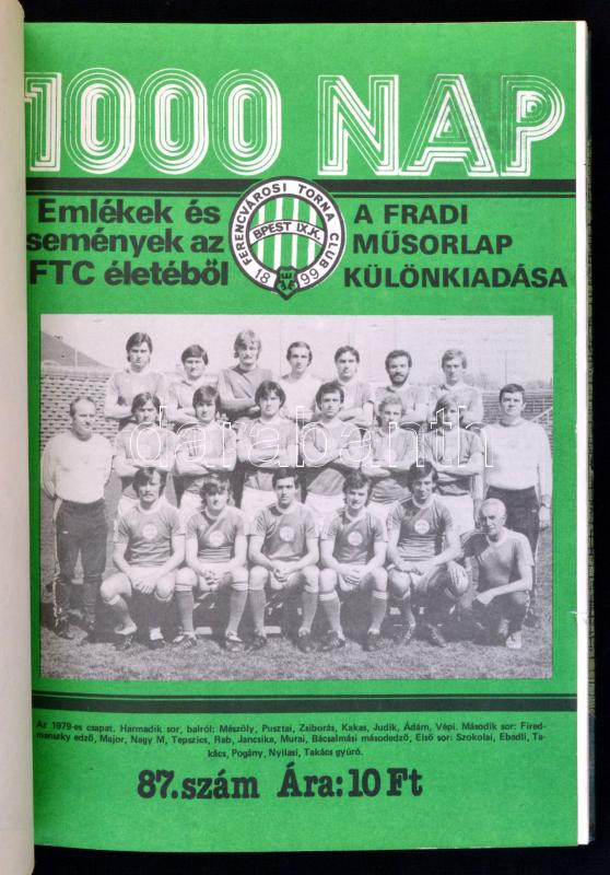 Leírás: 1982 1000 nap. Emlékek és események az FTC életéből. A Fradi Műsorlap különkiadás. 87. sz. Dedikációkkal! Későbbi vászonkötésben, jó állapotban.