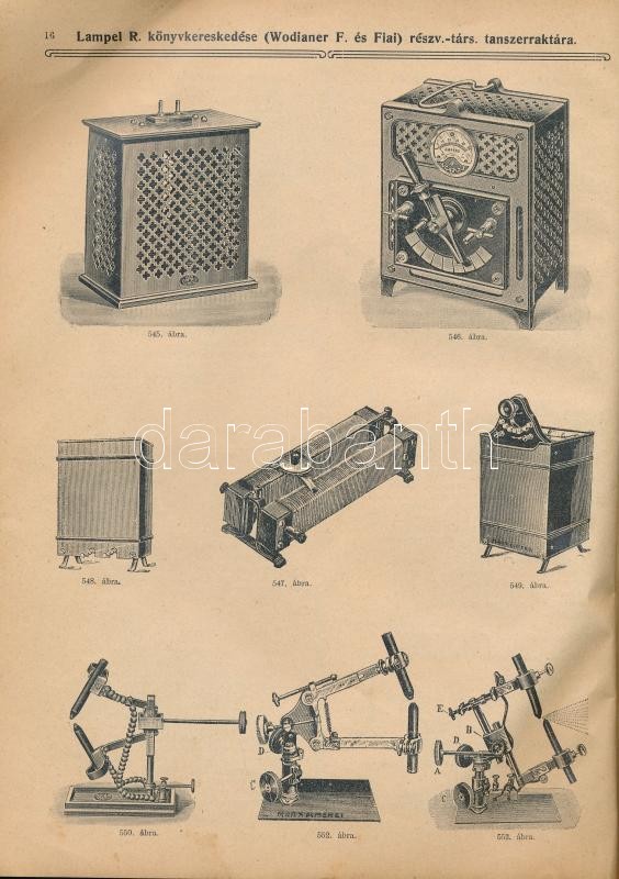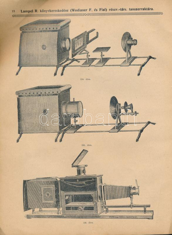 Vetítőgépek, felszerelések és vetíthető (diapositiv) képek jegyzéke. Kiadja Lampel R. könyvkereskedése (Wodianer F. és fiai) Rt. tanszerraktára, Budapest, Andrássy út 21. Sok illusztrációval, enyhén viseltes állapotban / Hungarian classroom projectors' catalogue, 68 p.