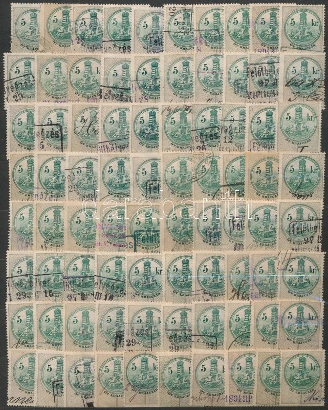 Leírás: 1859 160 db 5kr-os okmánybélyeg, hagyatékból berakólapon