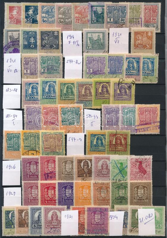 Leírás: 1900-1934 123 db magyar okmánybélyeg A4-es berakólapon (25.080)