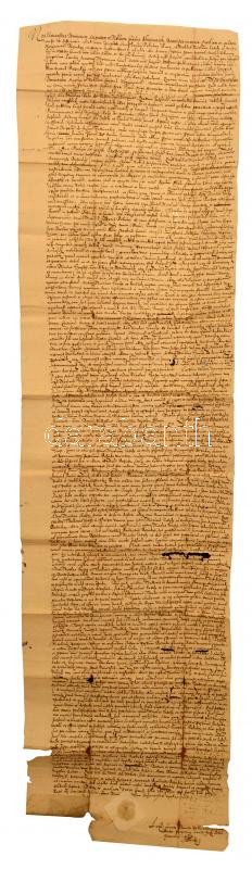 Leírás: 1624 Abaúj vármegye nemesi közgyűlésének oklevele vármegyei ügyben, latin nyelven, rányomott papírfelzetes viaszpecséttel, a hajtások mentén sérült