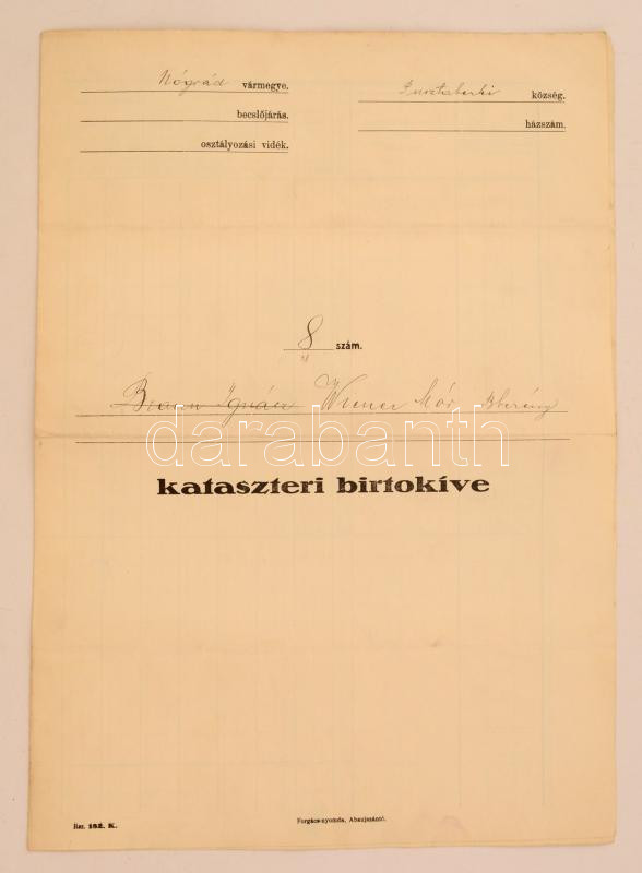 cca 1900 Wiener Mór gazdálkodó pusztaberki birtokának kataszteri birto... https://www.darabanth.com/hu/280-Gyorsarveres/280.0/Festmeny-mutargy-papirregiseg-egyeb/Okmanyok~16/cca-1900-Wiener-Mor-gazdalkodo-pusztaberki-birtokanak-kataszteri-birtokive~II1445969