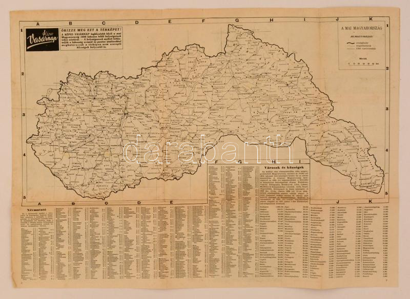 1940 A mai Magyarország, a Képes Vasárnap térképmelléklete, lépték nél... https://www.darabanth.com/hu/280-Gyorsarveres/280.0/Festmeny-mutargy-papirregiseg-egyeb/Terkepek~26/1940-A-mai-Magyarorszag-a-Kepes-Vasarnap-terkepmelleklete-leptek-nelkul-41-5C39757-5-cm~II1442101