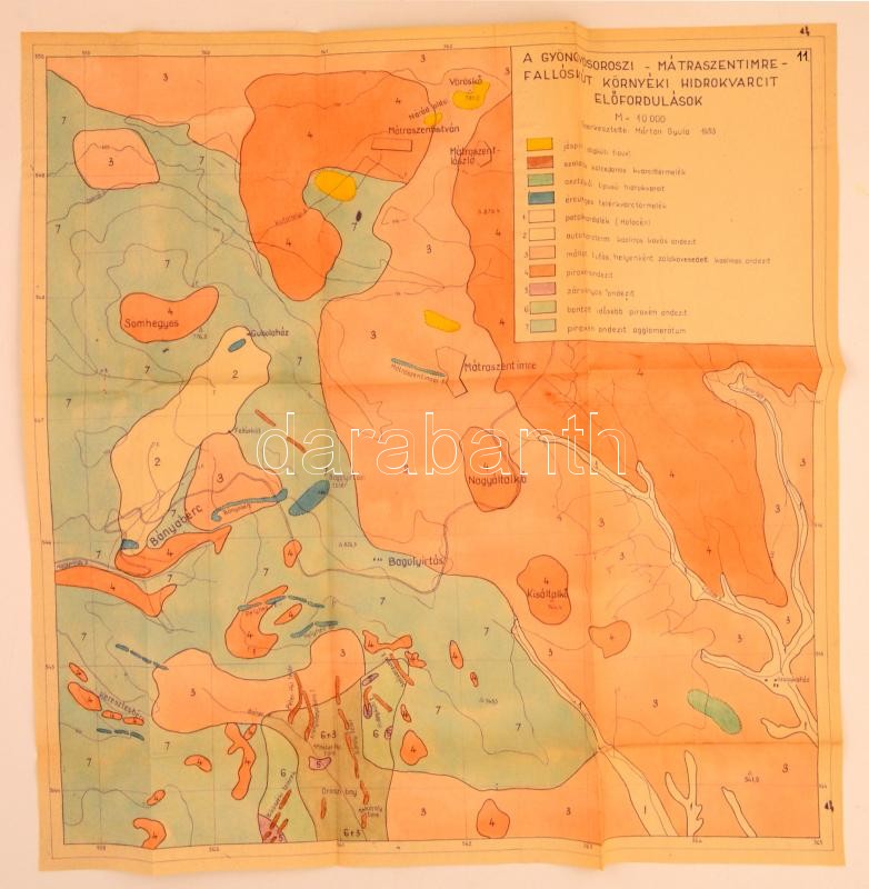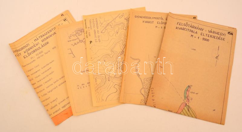 Leírás: cca 1950 Felsőtárkány - Gyöngyösoroszi - Gyöngyössolymos 6 db nagyobb méretű, kézzel rajzolt geológiai térkép