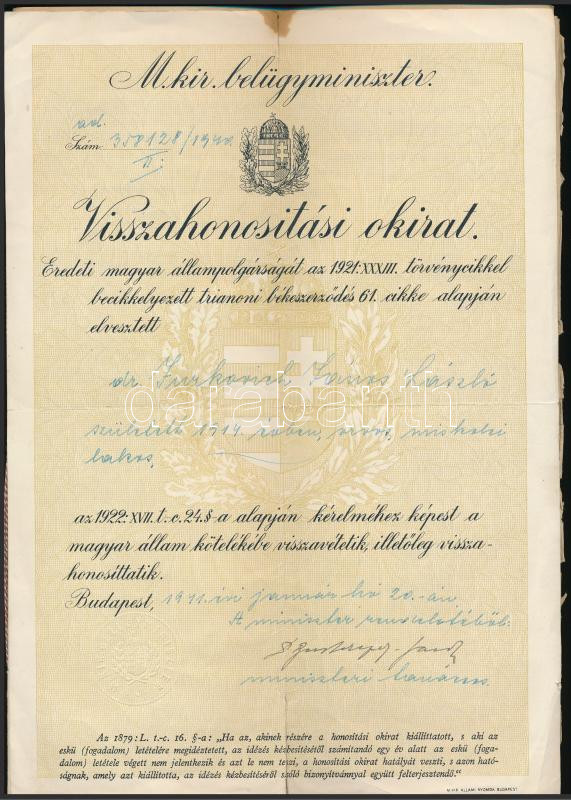 cca 1941-1952 Jurkovich János László Aladár (1914-?) garamolaszkai származású sajókazai körorvos iratai: visszahonosítási okirat, letelepedési engedély, SZDP tagkönyv, valamint sajókazai és más járási lakosok kérvényei ill. nyilatkozatai körorvosi minőségben való megtartására