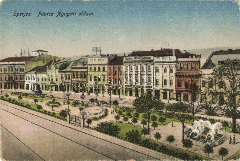 Eperjes, Presov; Fő utca nyugati oldala / main street https://www.darabanth.com/hu/280-Gyorsarveres/280.0/Kepeslapok/Felvidek~200014/Eperjes-Presov-Fo-utca-nyugati-oldala-main-street~II1444045