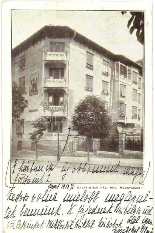 Budapest XI. Orlay utcai lakóház, tervezte: Medgyaszai I. (EK) https://www.darabanth.com/hu/280-Gyorsarveres/280.0/Kepeslapok/Magyarorszag~200011/Budapest-XI-Orlay-utcai-lakohaz-tervezte-Medgyaszai-I-EK~II1445601