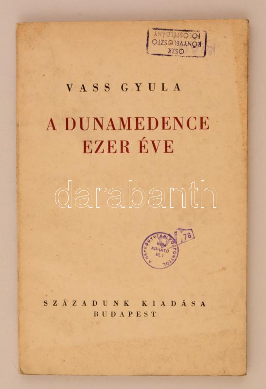 Vass Gyula: A Dunamedence ezer éve. Budapest, é.n. (1940), Századunk, ... https://www.darabanth.com/hu/280-Gyorsarveres/280.0/Konyvek/Konyvek-Tortenelem~31/Vass-Gyula-A-Dunamedence-ezer-eve-Budapest-en-1940-Szazadunk-Pesti-Lloyd-Nyomda-Kiadoi~II1440399