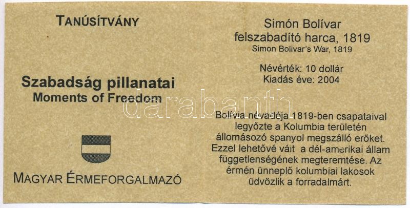 Libéria 2004. 10$ "Szabadság pillanatai - Simon Bolívar felszabadító h... https://www.darabanth.com/hu/280-Gyorsarveres/280.0/Numizmatika/Kulfoldi-fem-es-ezustpenzek~300013/Liberia-2004-10USD-Szabadsag-pillanatai--Simon-Bolivar-felszabadito-harca-1819-multicolor-T~II1439778