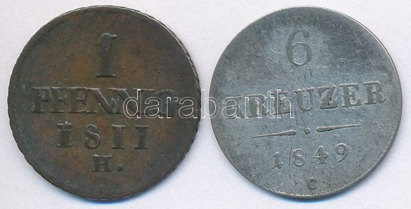 Vegyes: Ausztria 1849C 6kr Ag + Német Államok / Szász-Albertin 1811H 1pf Cu T:2-.3