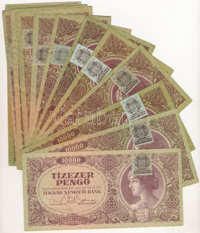Leírás: 1945. 10.000P (15x) mindegyik "MNB" bélyeggel T:II,III