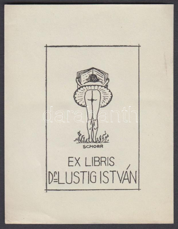 Leírás: Schorr Tibor (?-?):Erotikus ex libris, Dr. Lustig István. Klisé, papír, jelzett a klisén, 5,5×4 cm