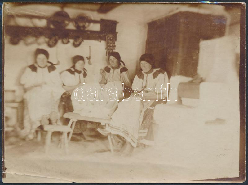1913 Kalotaszeg, Asszonyok a fonóban, fotó, 8,5x11,5 cm https://www.darabanth.com/hu/281-Gyorsarveres/281.0/Festmeny-mutargy-papirregiseg-egyeb/Foto~19/1913-Kalotaszeg-Asszonyok-a-fonoban-foto-8-5x11-5-cm~II1448580