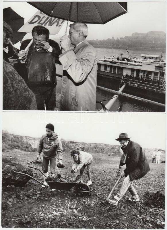 Leírás: A nagymarosi vízlépcső ellenes tüntetésről készült 4 db sajtófotó, Sáfár Tibor Új Magyarország fotó, pecséttel jelzett, 13x18 cm