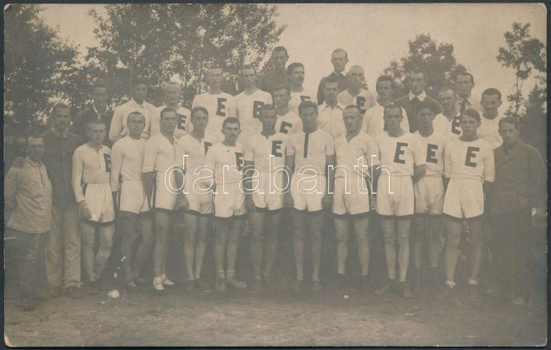 cca 1914 Sportolók csoportja, fotólap, 9x14 cm https://www.darabanth.com/hu/281-Gyorsarveres/281.0/Festmeny-mutargy-papirregiseg-egyeb/Foto~19/cca-1914-Sportolok-csoportja-fotolap-9x14-cm~II1449935