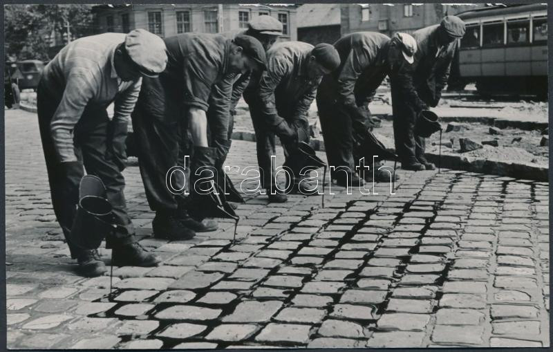 cca 1945-1950 Budapest, Útépítő munkások, jelzetlen fotó, 9x14 cm https://www.darabanth.com/hu/281-Gyorsarveres/281.0/Festmeny-mutargy-papirregiseg-egyeb/Foto~19/cca-1945-1950-Budapest-Utepito-munkasok-jelzetlen-foto-9x14-cm~II1449933