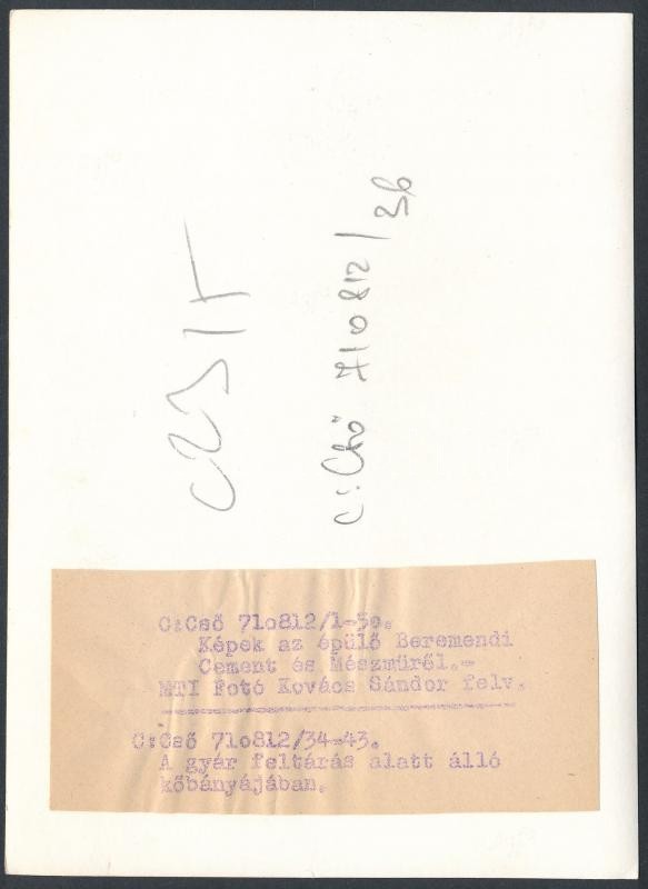 Leírás: cca 1960-1970 Életkép az épülő Beremendi Cement és Mészműről, MTI sajtófotó, hátoldalon feliratozva, 17x12 cm