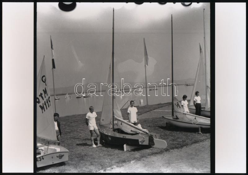 Leírás: cca 1975 Velencei-tó, ifjúsági versenyek résztvevői, 3 db korabeli vintage negatívról készült mai nagyítások, 18x25 cm