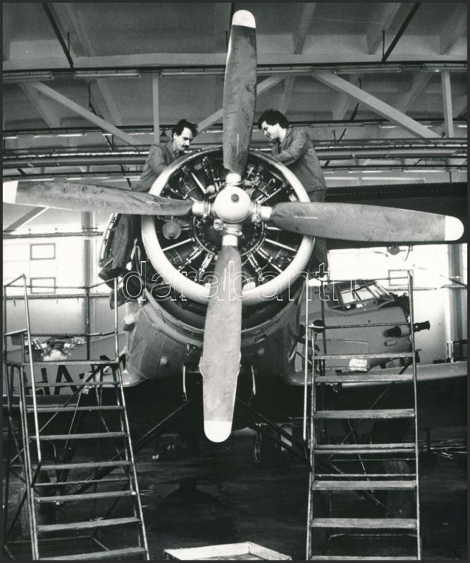cca 1985 Nyíregyháza, a Mezőgazdasági és Élelmiszeripari Minisztérium Repülőgépes Szolgáltatása újítja fel a mezőgazdaságban használt repülőgépeket, vintage fotó, 22x18,5 cm
