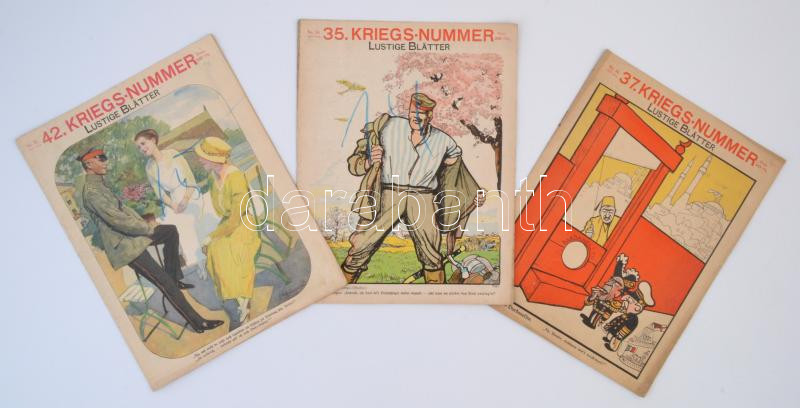 1915 35., 37., 42. Kriegs-Nummer Lustige Blätter, 3 db https://www.darabanth.com/hu/281-Gyorsarveres/281.0/Festmeny-mutargy-papirregiseg-egyeb/Militaria~26/1915-35-37-42-Kriegs-Nummer-Lustige-Blatter-3-db~II1450320