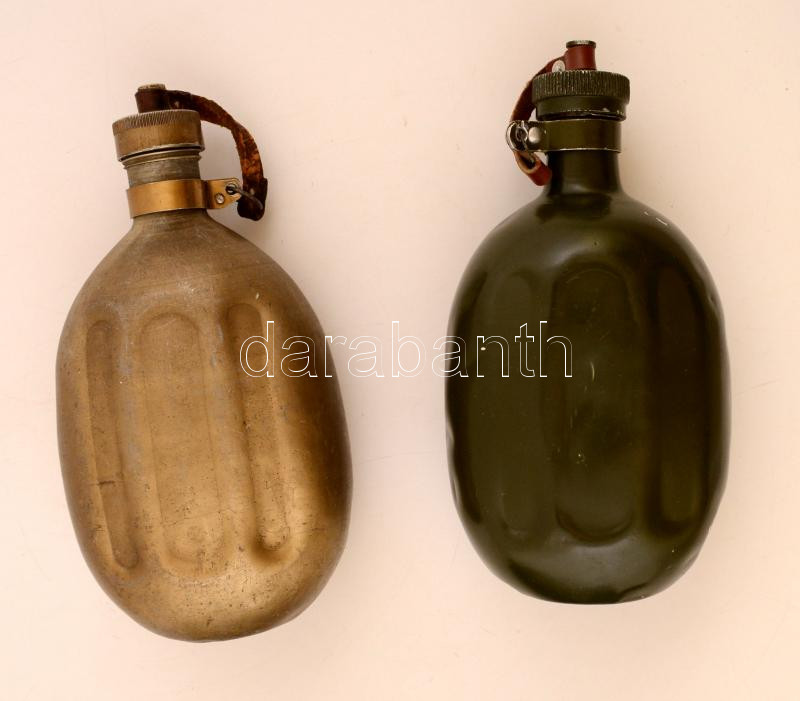 Katonai kulacsok, 2 db, kisebb kopásokkal és horpadásokkal, m: 23 cm. https://www.darabanth.com/hu/281-Gyorsarveres/281.0/Festmeny-mutargy-papirregiseg-egyeb/Militaria~26/Katonai-kulacsok-2-db-kisebb-kopasokkal-es-horpadasokkal-m-23-cm~II1424369