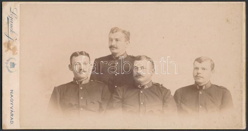 Leírás: cca 1900-1914 Katonák, keményhátú fotó Lojanek nagyváradi műterméből, 11x21 cm