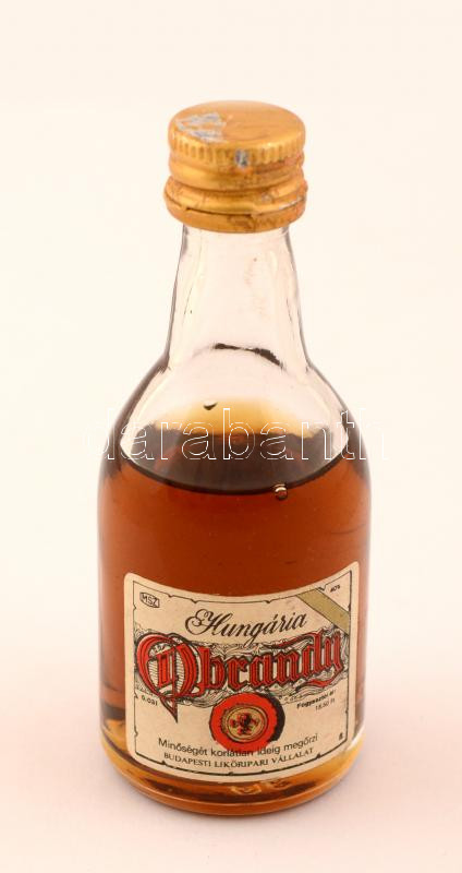 Leírás: 1958 Hungária Obrandy, Budapesti Likőripari Vállalat, eredeti bontatlan üvegben, 0,03 l