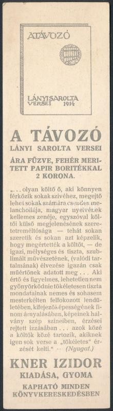 Leírás: cca 1919-1920 A Kner Nyomda által kiadott könyvjelző